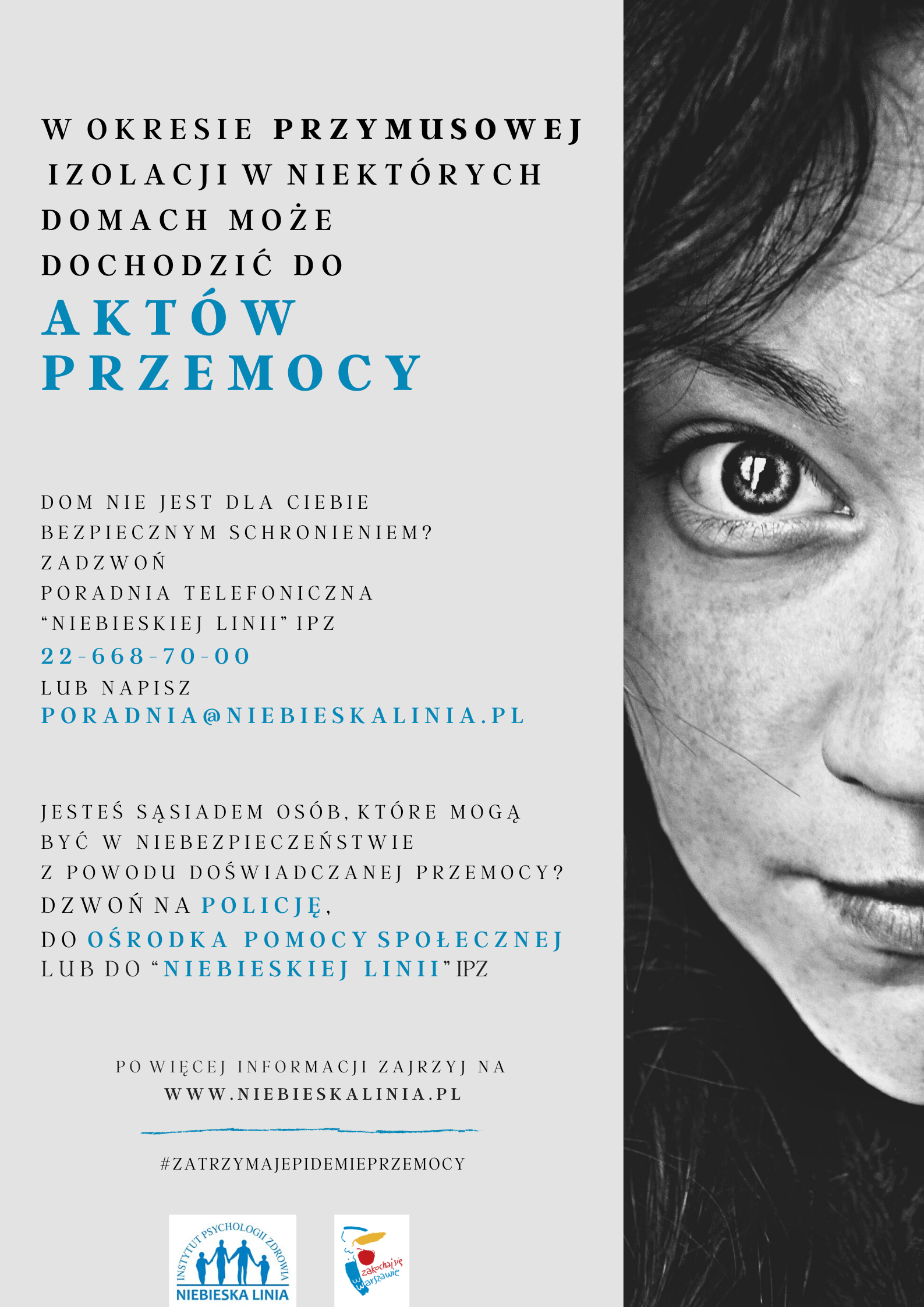 #ZatrzymajEpidemiePrzemocy to akcja, w ramach której "Niebieska Linia" IPZ pragnie pokazać, że w sytuacji przemocy domowej zarówno osoby pokrzywdzone przemocą, jak i jej świadkowie, nie są sami.